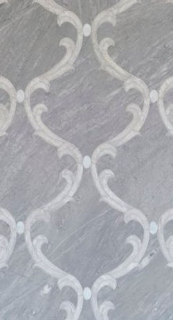Materials Shown in Image: LIGHT BARDIGLIO (Honed), STRATUS BLUE (Honed), SEASHELL (Mother of pearl)